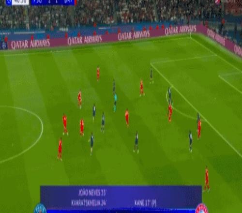 第33分钟,巴黎圣日耳曼球员登贝莱开出角球,若昂-内维斯甩头攻门顶入远角破门,巴黎圣日耳曼反超比分。2-1!