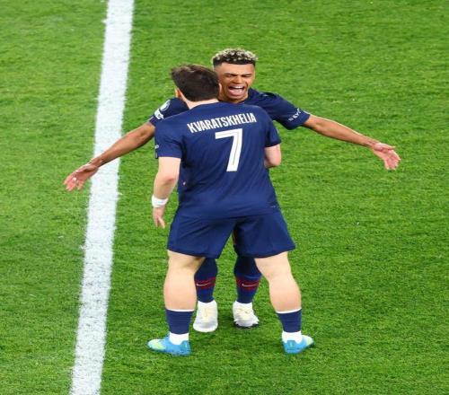 仅仅7分钟后,巴黎圣日耳曼球员杜埃左路转身精准直传,克瓦拉茨赫利亚晃开角度,内切推射一气呵成,拜仁慕尼黑门将诺伊尔鞭长莫及,巴黎圣日耳曼扳平,1-1!