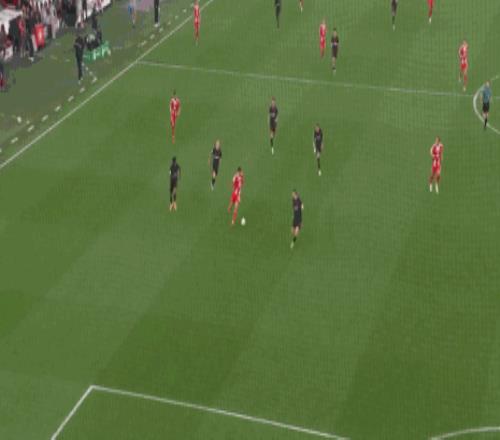 第22分钟,穆西亚拉横传,凯恩破门,拜仁1-0