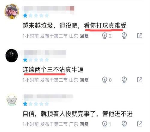 此役赵嘉义替补出战13分钟,3中1,仅得到2分1篮板,令人尴尬的是,嘉义除了有5次犯规,还投了2个三不沾。进攻端由于缺乏自主进攻能力,也让赵嘉义在场上的发挥非常受限,防守端他又很难跟上迪亚洛、张宁这种身体素质不错的壮型锋线的脚步,只打了13分钟就5犯离场。球迷直言:看你打球真难受。