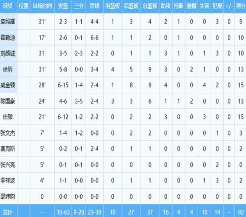 广州队那边则是全面开花,多达6人得分上双,尤其徐昕面对老东家毫不手软,投篮8中5独揽13分9板(4前场板)3助2帽,在内线频频上演重扣好戏。