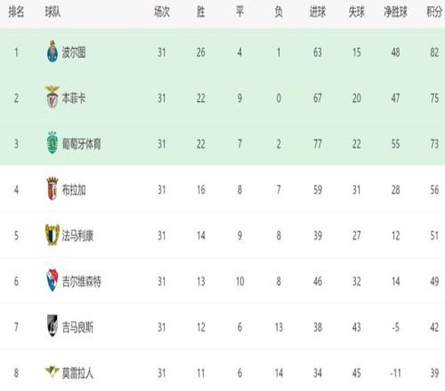 看到葡萄牙体育爆冷,穆帅恐怕已经开始笑了。截至目前,31轮比赛踢完,葡萄牙体育排名第三,落后第二的本菲卡2分。由于本赛季本菲卡对阵葡萄牙体育1胜1平,因此最后3轮比赛,穆帅的球队只要再拿到7分,他们就肯定能锁定第二名,晋级下赛季欧冠。
