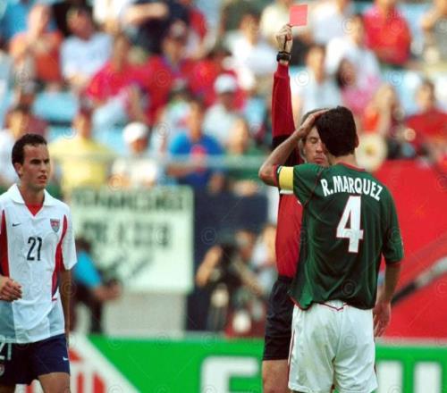 2002年世界杯墨西哥被淘汰那场,马克斯一头顶向美国队的科比·琼斯被罚下。