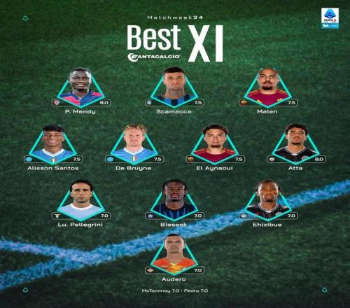 北京时间4月30日,意甲官方公布了联赛第34轮的最佳阵容,德布劳内领衔,斯卡马卡、马伦、艾纳维、卢卡-佩莱格里尼以及比塞克入选。