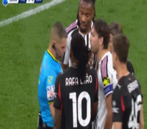 第19分钟,洛卡特利放倒拉比奥,引发两队冲突