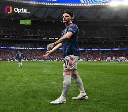 欧冠半决赛首回合,阿森纳客场1-1战平马德里竞技,阿森纳本场赖斯本场比赛触球99次,传球成功83次,均为本周欧冠所有球员最多。