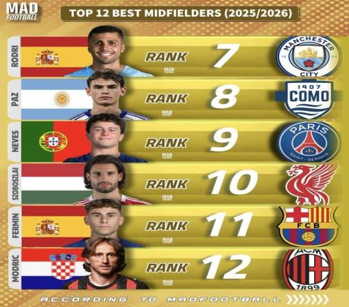 再往后,罗德里(第7)、帕斯(第8)和费尔明(第11)更是槽点满满。罗德里由于只踢了19场,样本太小被压低排名可以理解;科莫的帕斯32场12球6助确实惊艳,但直接塞进前八稍显激进;反而是巴萨的费尔明,25场5球8助,跟着联赛第一的队伍,却只排第11,明显偏低了。